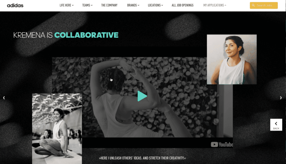 Un site lié à la plateforme carrière de la marque met en avant comment ses employés traduisent les qualités acquises par le sport en succès dans leur travail. Parce qu’ils sont là pour créer (« here to create »).